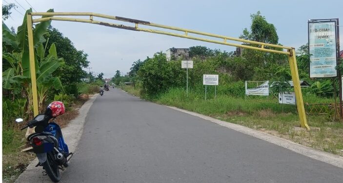 Tanjabbar--Miris, tiang portal berwarna Kuning di lokasi RT.03,Desa Bram Itam Raya,Kecamatan Bram Itam,penghubung antar Desa,Kecamatan dan Kota...