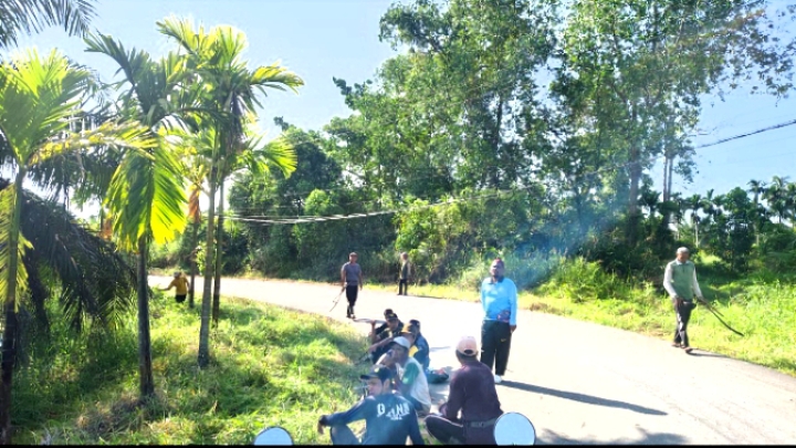 Tanjabbar–Semangat kebersamaan dan Gotong royong (Goro) Bentuk kerja bakti kembali ditunjukkan oleh pemerintah Desa Kemuning Kecamatan Bramitam Kabupaten Tanjung Jabung Barat (Tanjabbar)