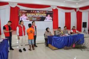 Tanjabtim – Kapolres Tanjab Timur AKBP Heri Supriawan, SIK, MH didampingi Kasat Reskrim, dan Kasi Humas Polres Tanjab Timur melakukan pres release terkait penanganan perkara tindak pidana kebakaran hutan dan lahan (karhutla) yang terjadi di wilayah Hukum Polres Tanjab Timur, Kamis 25 Juli 2024.