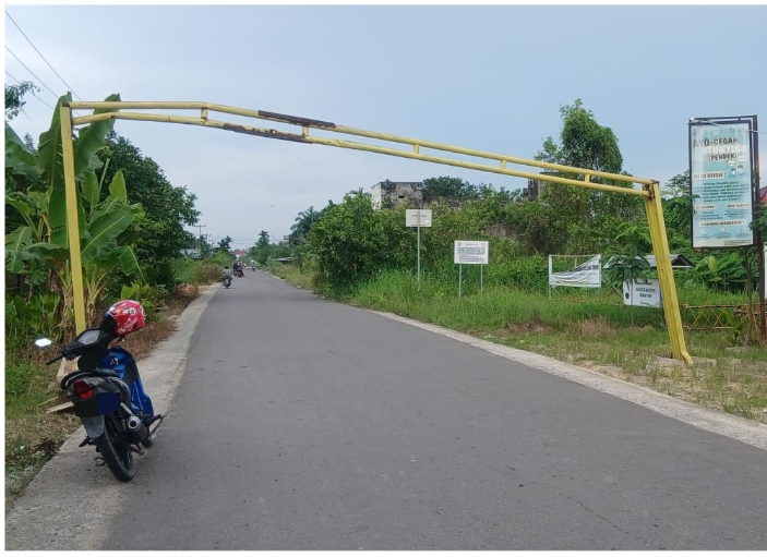 Pasal nya kondisi tiang portal tersebut,kini mengalami miring (Rusak)Bahkan pondasi bagian bawah tiang portal yang dicor oleh semen terangkat dan tidak sesuai dengan posisi awalnya.